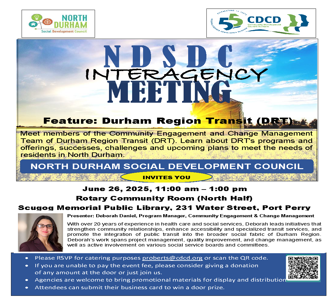 Agencies are invited to attend the North Durham Social Development Council meeting.
